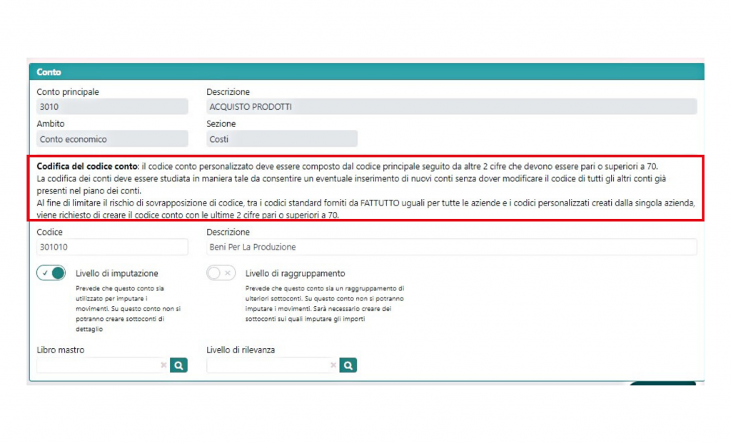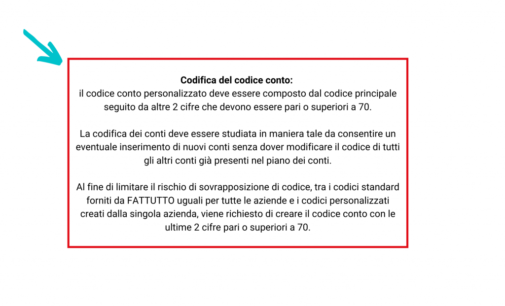 Nella schermata che ti appare, abbiamo inserito una serie di istruzioni che ti guideranno nel processo senza errori e con la corretta codifica per i conti che andrai a creare.