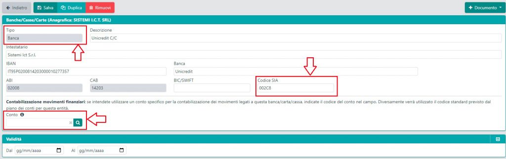 Nota Bene: I conti correnti già censiti sono stati automaticamente registrati ed etichettati nella tipologia “banca”
