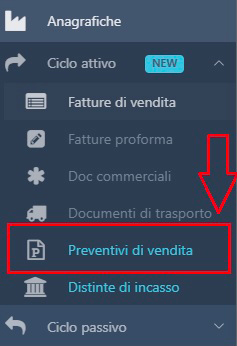 Dal menù laterale seleziona Ciclo Attivo scegli la voce ➡️Preventivo di vendita.