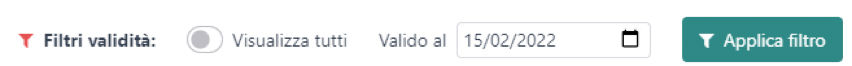 Per visualizzare gli elementi in base alla data di validità è prevista una riga di Filtri, nei vari punti di utilizzo.