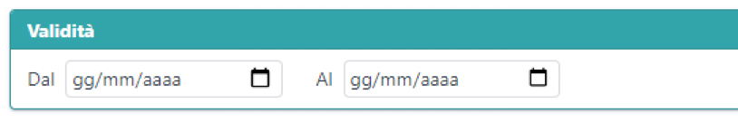 La data di validità è opzionale e se non indicata l’elemento sarà sempre considerato valido.