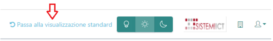Per tornare ad utilizzare la versione precedente sarà sufficiente cliccare sul link “Passa alla visualizzazione standard” presente nella barra in altro