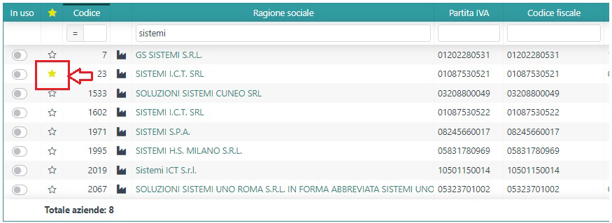 A questo punto ti comparirà l’elenco delle aziende che hai caricato sul tuo profilo. Per scegliere la tua azienda preferita ti basterà attivare la stellina a fianco del nome dell’azienda che preferisci.