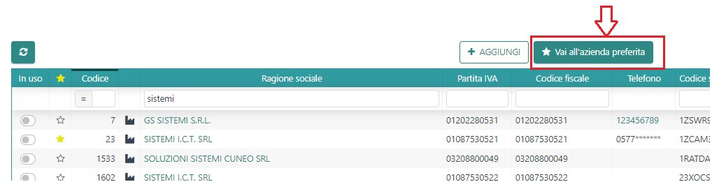 Se ti trovi già nella pagina di elenco delle tue aziende, utilizza l’apposito pulsante “Vai all’azienda preferita” per iniziare a lavorarci subito.