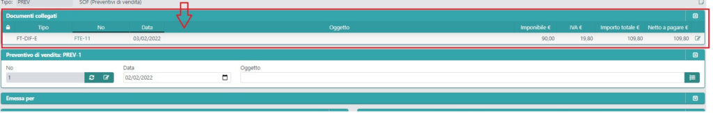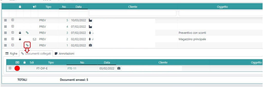 Nella lista è presente il simbolo 🔗 , che evidenzia i preventivi che sono già stati fatturati e con un clic sull’icona potrai vedere il dettaglio dei documenti collegati.