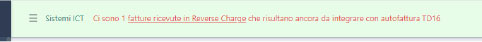 Tra le informazioni di mancato invio di documenti esposte nell’header di pagina vedrai ora anche quelle relative alle fatture ricevute in reverse charge e che necessitano dell’invio di un’autofattura di integrazione (tipo documento TD16).
