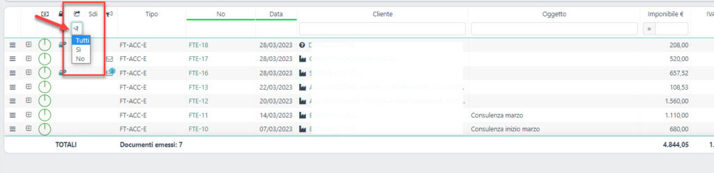 l’opzione che ti interessa per visualizzare la lista fatture esportate, non esportate o tutte (valore proposto di default). Una volta effettuata la scelta, potrai consultare l’elenco filtrato in base alla tua scelta, senza errori e senza perdite di tempo.