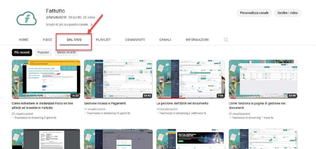 Selezionando la voce Video formazione, avrai a accesso al canale You Tube di Fattutto e potrai scegliere l’argomento o la funzionalità che vuoi approfondire dalla galleria dei tanti contenuti e tutorial che abbiamo caricato.