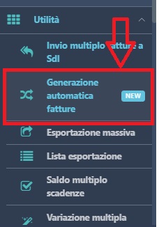 La funzione è molto semplice da utilizzare, si chiama Generazione automatica fatture e si trova nel menu sotto la voce Utilità