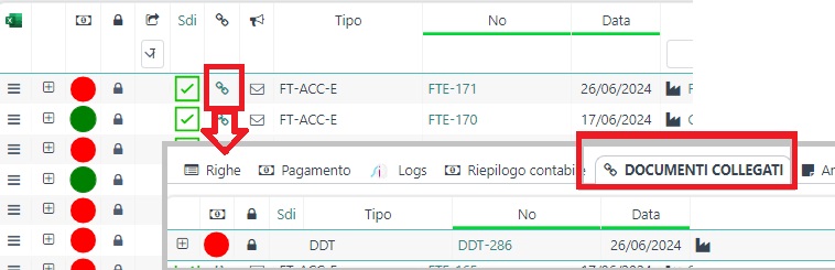 Ad esempio se hai generato una fattura partendo da un DDT o da un Ordine di lavoro, potrai sempre visualizzare il collegamento tra i due documenti direttamente dalla vista delle fatture.