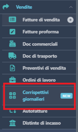 Trovi la gestione alla voce Gestione corrispettivi nel menu Vendite.