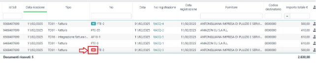 Vai nella pagina Fatture ingresso dal menu Acquisti