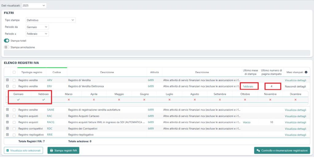 - il dettaglio dello stato di stampa definitivo per tutti i mesi, consultabile direttamente.